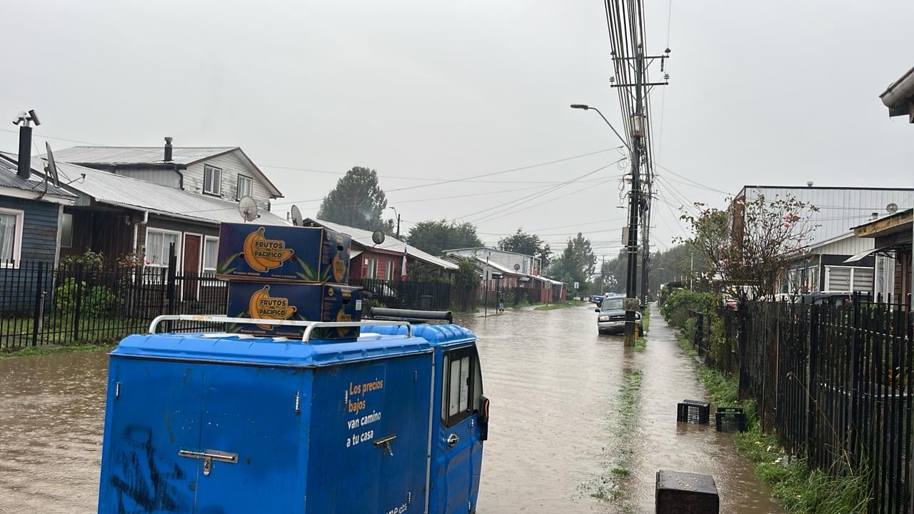 Calles anegadas en Frutillar producto de las intensas precipitaciones.
