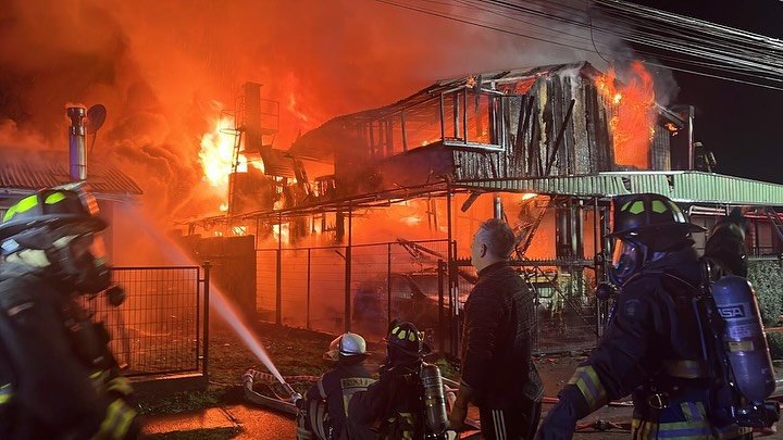 Un devastador incendio sacudió la madrugada de hoy la población Vista Hermosa en Frutillar, dejando un saldo de cuatro viviendas afectadas y once personas damnificadas. El siniestro, que se desató en la calle Vermont, consumió por completo dos de las propiedades, mientras que las otras dos sufrieron daños considerables.