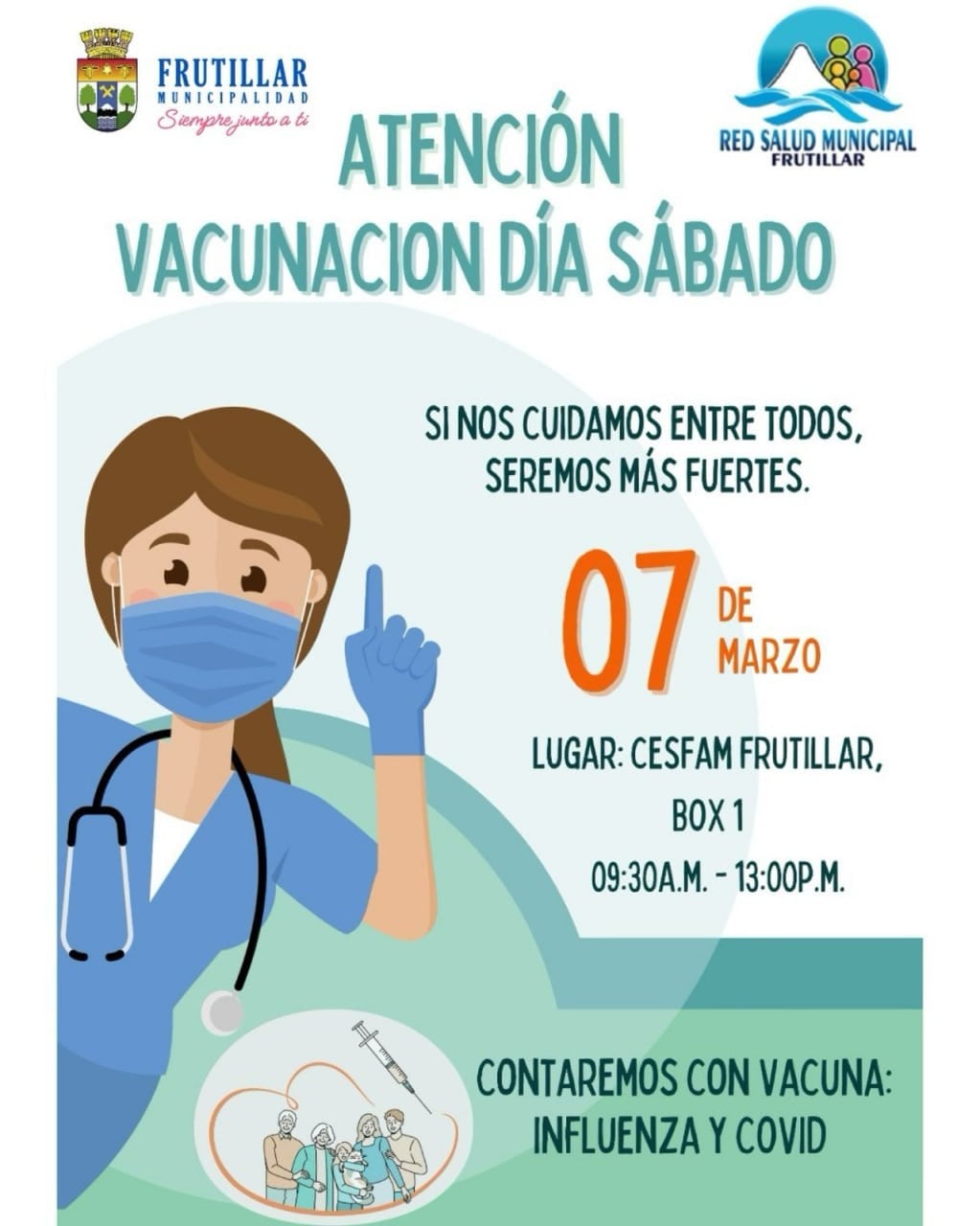 El CESFAM de Frutillar realizará una jornada especial de vacunación este sábado 7 de marzo, de 09:30 a 13:00 hrs. Disponible Influenza y Covid-19.
