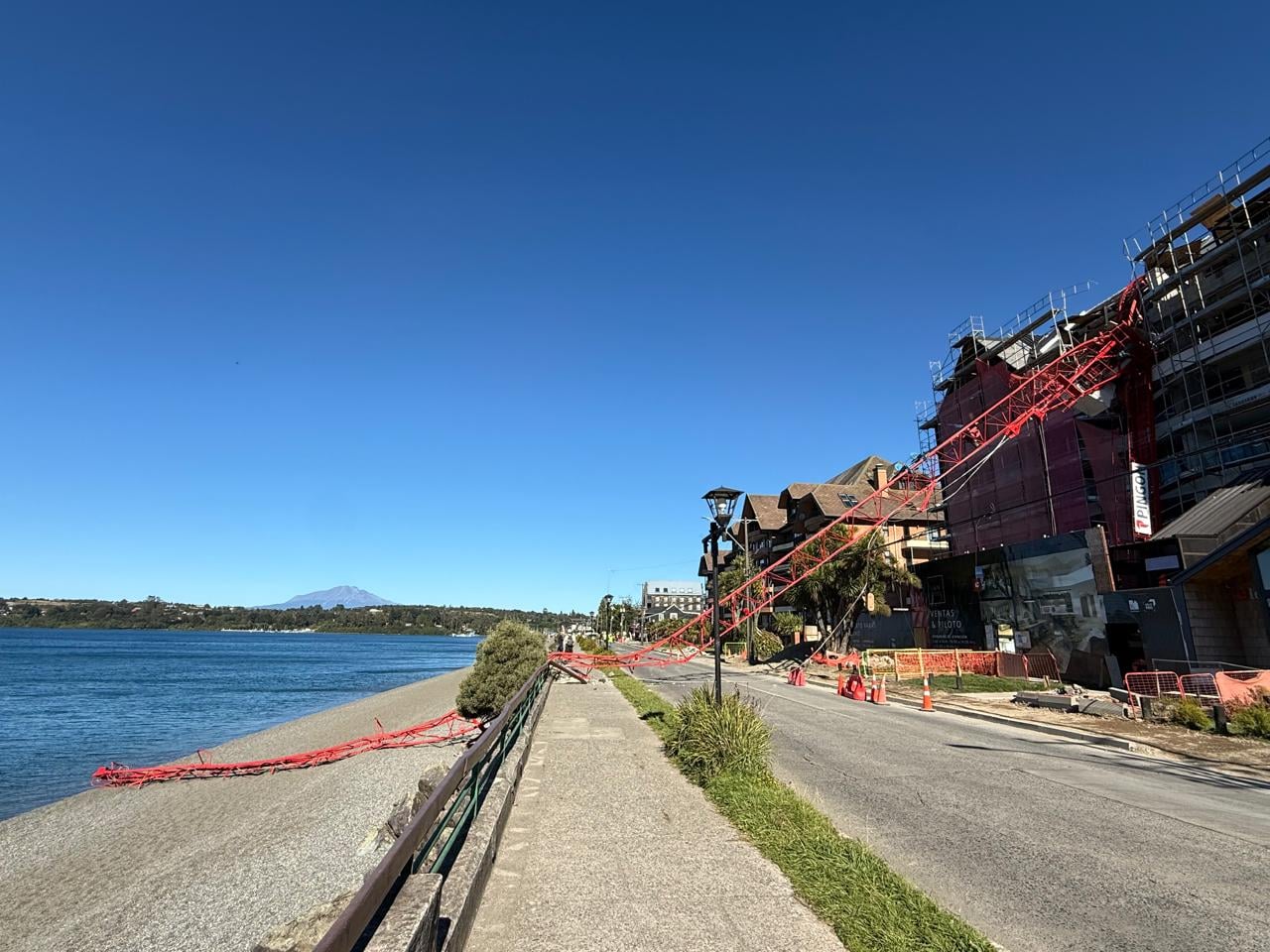 Un incidente se registró este 19 de febrero de 2026 en el sector Costanera de Puerto Varas, donde una grúa de gran envergadura, tipo pluma, colapsó sobre la vía y parte de la estructura alcanzó la playa, específicamente entre Punta de Diamante y Antonio Varas. La situación llevó a la suspensión del tránsito vehicular en el tramo afectado, sin que se reportaran personas heridas.