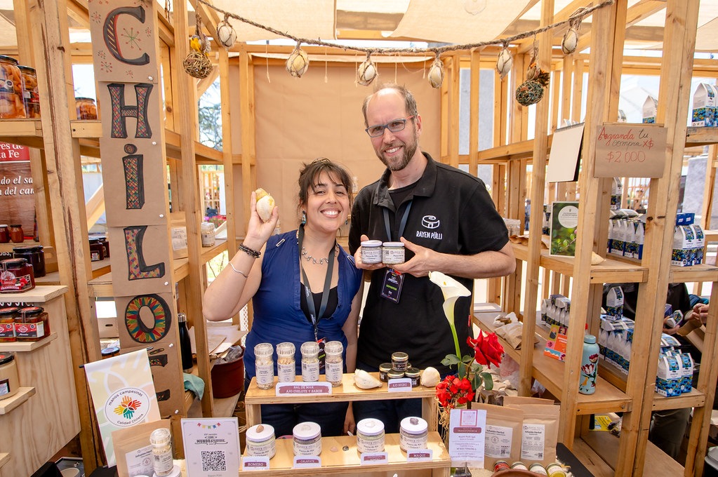 También estarán presentes Rayen Pulli de Puqueldón con sus pastas de ajo chilote, Terralluvia de Chonchi con licores de frutos nativos, y Frutos de Campo con papas nativas y otros productos emblemáticos del archipiélago de Chiloé.
