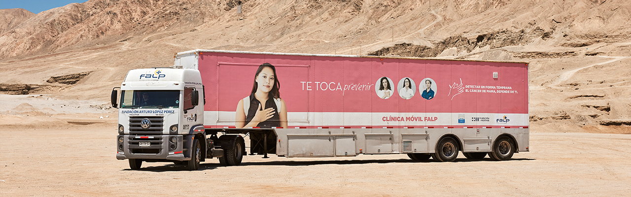 Desde hace 18 años, FALP ha puesto en marcha sus Clínicas Móviles, seis unidades de salud completamente equipadas con tecnología de alta precisión diagnóstica, salas de mamografía y personal especializado. Estas clínicas recorren el país, desde zonas urbanas hasta localidades remotas como Alto Bío Bío y Toconao, con el objetivo de llevar prevención, educación y acceso oportuno a miles de mujeres.