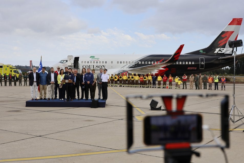 El presidente Gabriel Boric presentó este jueves 8 de enero de 2026 el avión tanquero Boeing 737 Fireliner, una incorporación clave para la lucha contra los incendios forestales en la temporada de alto peligro.